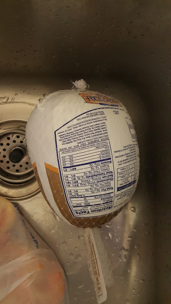 1. Buy the turkey breast. All I did here was go to the standard mega-store and buy one of the standard frozen turkey breasts. Nothing special here: