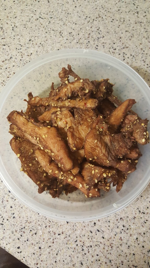 6. Store the meat in a plastic container. The end result was great. I used a bit too much salt, but for a first time experiment, it worked out well.