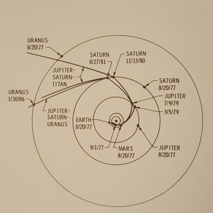 The idea of exploring the outer solar system had long enchanted astronomers. But it was not until a unique event happened that this dream became a feasible reality. In the early 1970s, astronomers realized that the orbits of the outer planets (Jupiter, Saturn, Uranus, and Neptune) would coincide in a favorable alignment. This event happened, we are told, only once every 176 years. It would be possible for a fast-moving spacecraft to take advantage of this alignment and see in a relatively short time what it might otherwise take decades to see. In addition, a spacecraft would be able take advantage of the gravitational fields of these planets to “sling-shot” itself from one to the other at high velocities.