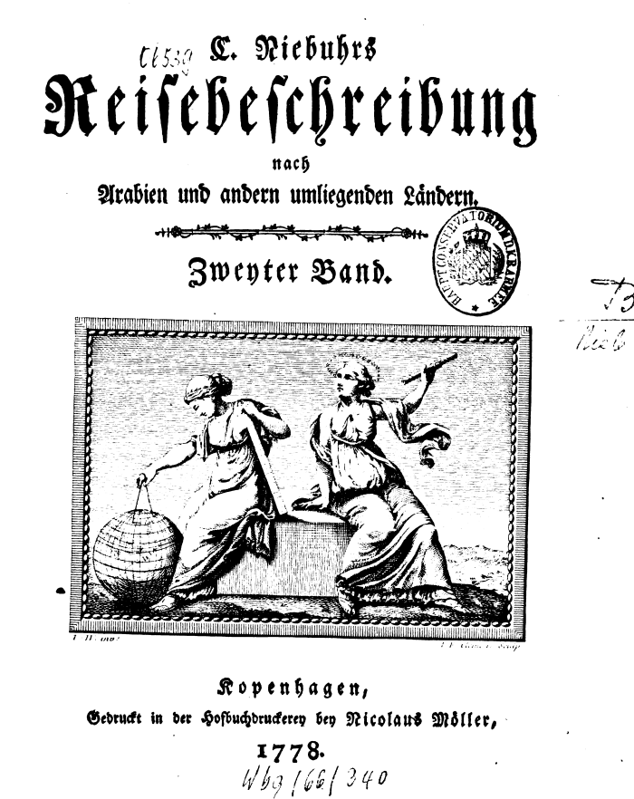 Through one of his colleagues, Niebuhr received word that Frederik V of Denmark was assembling an expedition to Arabia, Syria, Egypt, and other parts of the Near East. The subtle Danish king prided himself on being a patron of the arts and sciences, and was determined to expand the outer limits of the current knowledge of the Middle East. Having nothing else to do, Niebuhr resolved to apply for the position of surveyor. In preparation, he polished his skills at the University of Goettingen, and applied himself to the study of the Arabic language. He would never achieve the dazzling proficiency in Arabic that we find in John Lewis Burckhardt or Richard Burton; but Niebuhr was good enough, and he more than made up any shortcomings in this area with other equally important skills.