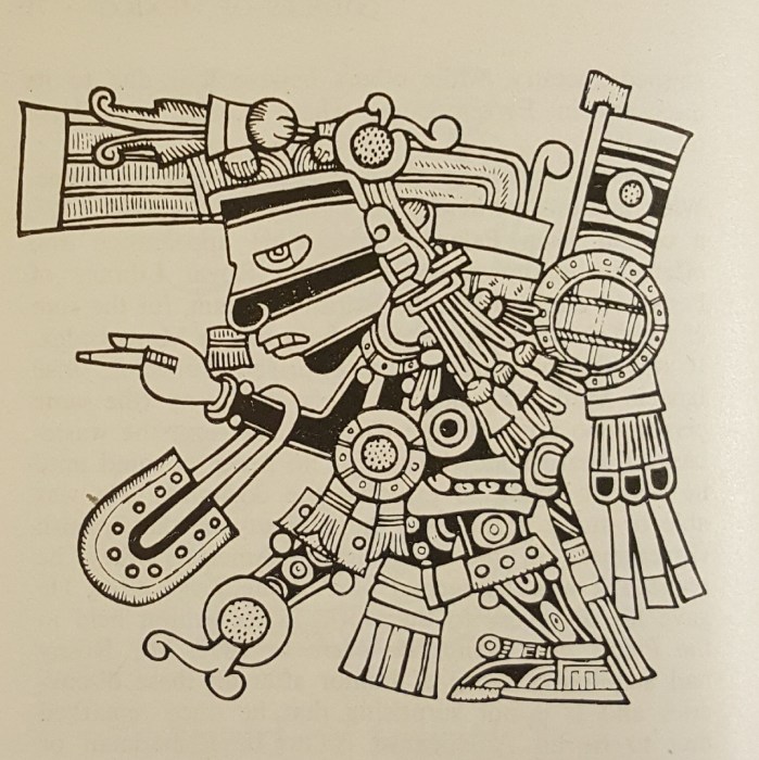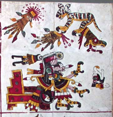 He must have been a man of considerable political acumen as well, for Pope Pius VI appointed him to be the municipal head of Rome as Napoleon approached the city in 1798. Borgia even found time to establish a museum in Velletri, and made it his life’s work to fill this space with valuable rarities from all over the world. Just before he died, he turned over his collection of manuscripts to the Santa Congregazione di Propaganda Fide. The book was displayed in the Ethnographic Museum in the congregation’s palace from 1883, and is now in the Vatican Library, that vast storehouse of all things ancient. The book itself contains about 76 pages, and is folded into 39 sheets of animal skin; in length, it measures 10.34 meters. The subject matter of the book is religious and prophetic: it describes the origin and nature of some Aztec gods, as well as the deeds of Quetzalcoatl and his evil twin brother Xolotl.