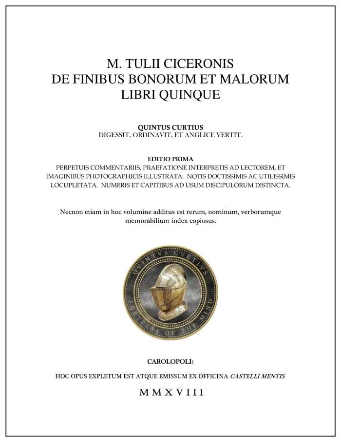 In December, Fortress of the Mind Publications will be releasing my new annotated and illustrated translation of Cicero’s work On Moral Ends (De Finibus Bonorum et Malorum). This announcement will provide some details about the book and what it contains.