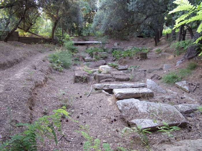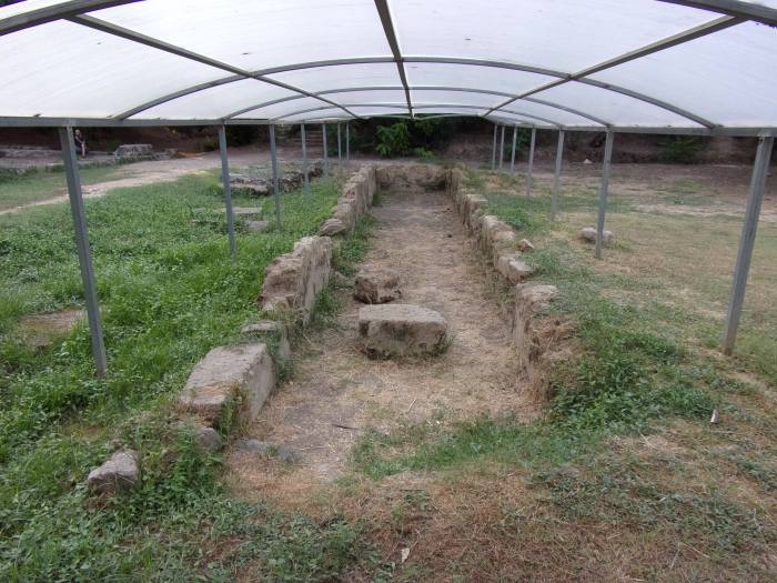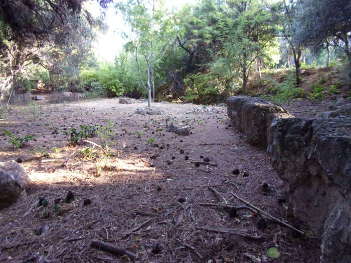 I walked the site and took the photographs you see below. The only site that was marked was that of the gymnasium; this palaestra dates from a later period, probably the 1st century A.D. There is even a cistern for the students’ bathing. Book learning and physical fitness thus went hand-in-hand, a lesson that should not be lost on us today. The site is still largely unmarked. It deserves restoration, but this is likely to have to wait future generations. It appeared to me that the Academy had different clusters of buildings, possibly lecture-halls, classrooms, or libraries.