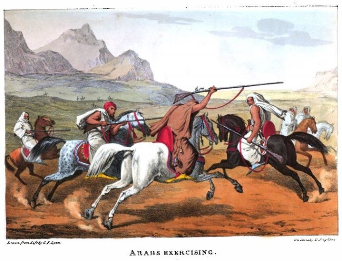 Lyon’s account of his travels is an impressive document. It is precise, lucid, and free of the type of fanciful depictions that mar so many other travel records of the nineteenth century. He did not explore the Sudan, but he did collect a great deal of valuable anecdotal information about the region. Physical danger was a very real issue; Lyon frequently remarks that it was an absolute necessity for him and his party to adopt local dress and speak Arabic at all times, for had they been detected as foreigners, they would immediately have fallen under suspicion. On his journey back to Tripoli, he observed raging flash floods that had the power to sweep a man away in an instant: