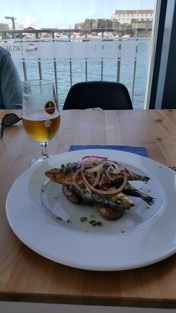 After spending time in the military museum, I headed over to a small restaurant on the water named “Cais da Sardinha,” which has very good seafood for a good price. The relevant photos are shown below: