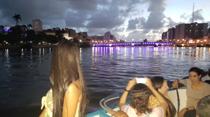 We took a boat ride in Recife last night. It was really just a short ride from one part of the city to the historic downtown area, which was surprisingly alive, considering that it was Christmas Day. I sampled a lot of the street food, as is my usual habit. One interesting thing I noticed was that whenever the boat passed under a bridge, the passengers clapped in unison. I supposed this was a local custom, perhaps having its origin as a way of warding off bad luck, or giving thanks for continued safety. No one I spoke to seemed to know the origin of the custom.