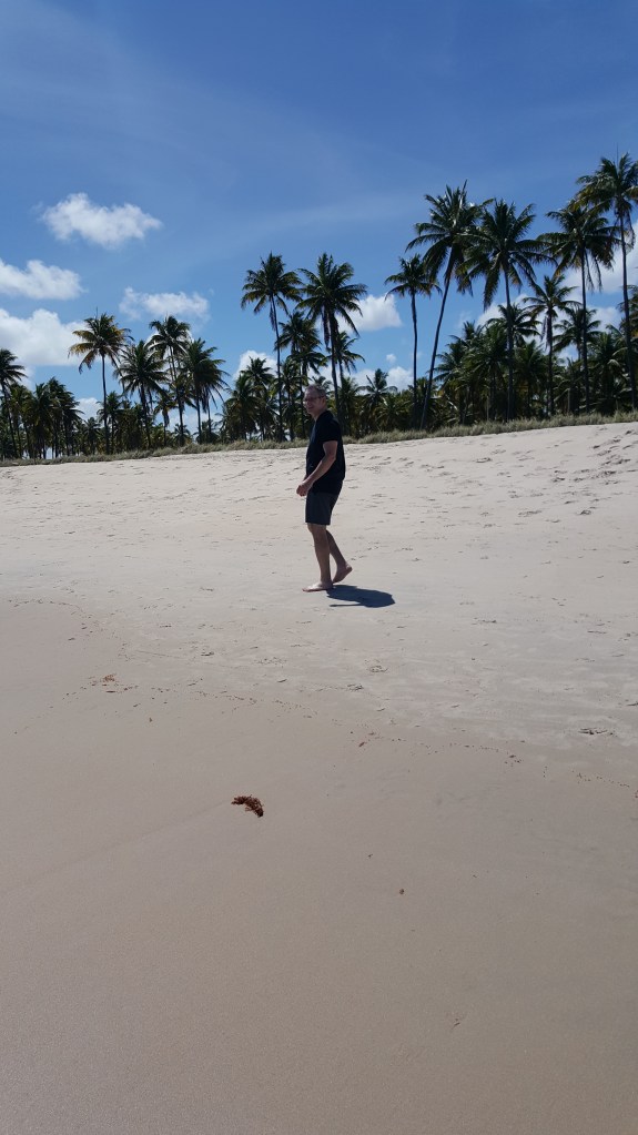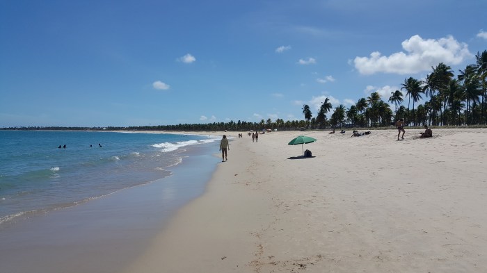 We recently visited the beach areas of Porto de Galinhas and Maragogi. Porto de Galinhas is a major tourist beach destination, and is located about 60 km. south of Recife, in the state of Pernambuco. Maragogi is a greater distance away; it is located in the state of Alagoas. Both of these places are known for their “natural pools” (piscinas naturais).