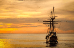 Transom then began to tell a chilling story about the origin of the skeleton chained to the gibbet. Stuffing a wad of Virginia tobacco in his cheek, the old mariner began to tell his tale. The events he described had taken place about forty years earlier. He was only a young man then, and it was “only the third time that I had ever smelt salt water.” It was a stormy night, with the wind lashing both sails and waves; the captain had decided to make for land without delay. Suddenly the watchman shouted that he could see the sail of a smaller vessel straight ahead. Before evasive action could be taken, the larger ship collided with the smaller, and severely damaged it. “ We passed slick over her,” said Transom, “as if she had been a mere boy’s plaything.” Shouts could be heard here and there, and the captain ordered a boat lowered; he believed that someone had left the smaller boat, and was heading for the shore. Cries in the darkness could be heard, and it seemed as though someone had made for the shore. Transom’s captain, wanting to render aid to the stricken boat, ordered a party to head for land, and find out if anyone needed help. Transom and his comrades thought it was not a good idea: