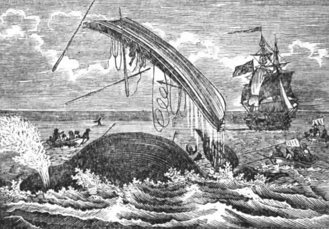 And observe how quickly do Fortune’s tables turn! Know, you Exerciser of the Will, that the scales of mortality may hinge on a fraction of a fraction! Consider this. In 1822, the whaling ship Baffin was cruising after its prey. In one of the boats was a harpooner named John Carr, and experienced and courageous whaling-man. His boat found itself amid a pod of whales, surrounded by nearly a hundred of the animals. Carr had his men row quietly in their midst, and he harpooned one whale who swam towards the boat; when the barb struck its target, the whale jerked sharply to one side, and this wrested the line from its place at the stern, throwing it up upon the gunwale.