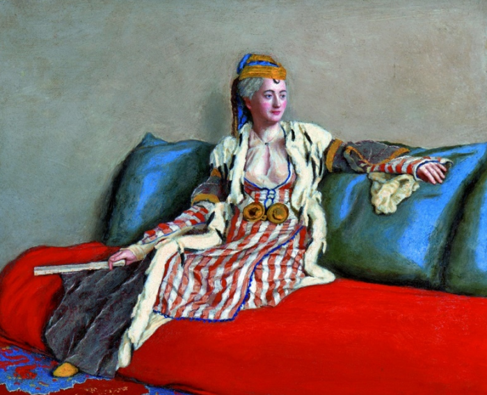 They crossed the Danube in 1717 and stayed for a time in Belgrade. As she moved through the Balkans, they entered Ottoman domains; and it was here that she first made the acquaintance of a Turkish effendi (scholar) named Achmet Bey, who introduced her to the subtleties of Arabic and Persian poetry. In Bulgaria she first encountered a Turkish bath, an event that registered a strong impression on her. She notes that the skins of the bathers observed there were “shiningly white, only adorned with their beautiful hair divided into many tresses, hanging on their shoulders, braided either with pearl or riband, perfectly representing the figures of the Graces… I perceived that the ladies of the most delicate skins and finest shapes had the greatest share of my admiration, though their faces were sometimes less beautiful than those of their companions.” For their part, the ladies of the Turkish baths were shocked at her rigid Western ways, especially the physically restrictive clothing she was in the habit of wearing. Her Letters from Turkey provide a unique glimpse into Oriental life in that era, and should be required reading for the serious traveler or antiquarian. After meeting the sultan, Achmet III, she found it useful to adopt Ottoman dress, which she describes somewhat amusingly as follows: