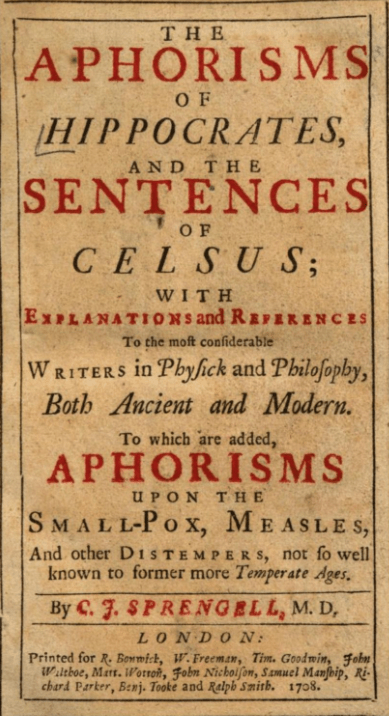 Kuhn’s analogy has a great deal of merit, as I see it. We could, I suppose, even call it a paradigm in itself. I was reminded of it recently, during my readings of the ancient medical writers Celsus and Hippocrates. What strikes the reader is just how astute and canny these old doctors were. It is so very easy for us today to take modern science for granted. We are accustomed to the use of chemistry, microbiology, physics, and rigorous experimental trials in medicine; yet we forget that these things are relatively recent innovations. As late as the early nineteenth century, medical education in the United States was extraordinarily primitive. Most medical schools consisted of lectures, where the works of ancient and medieval practitioners were studied.