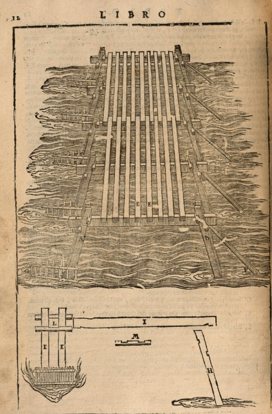 The most famous printed monument of his long career was his treatise Four Books of Architecture (I Quattro Libri dell’Architettura), published in 1570 and graced with glorious illustrations. Antiquarian scholarship always retained a certain hold on him. He tells us, at the outset of his Four Books, how impressed he was with Caesar’s engineering achievements in the Gallic War. In 1575, he published an innovative edition of Julius Caesar’s De Bello Gallico (Commentaries). Warfare seemed to fascinate many Renaissance minds, among them Da Vinci and Machiavelli; clearly the political turbulence of the period highlighted the need for its study by the era’s most perceptive minds.