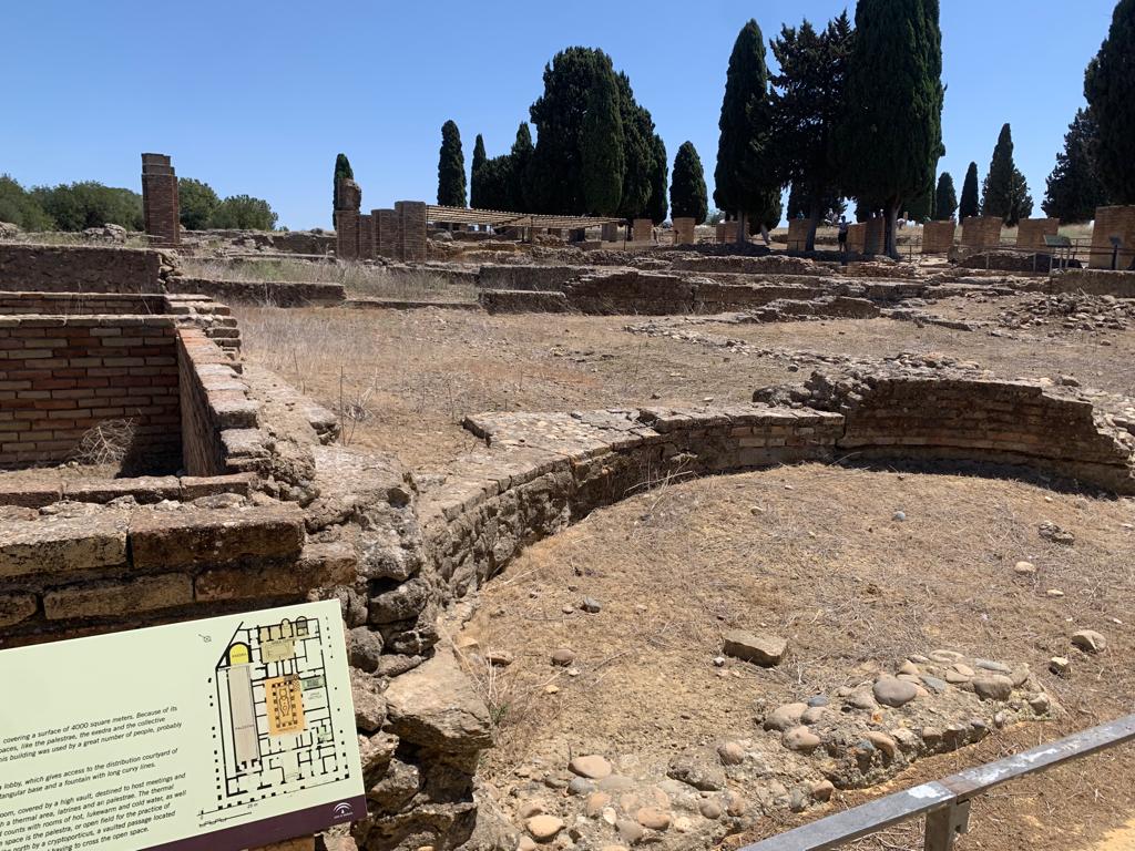 Yet it is what happened after the battle that most inspires the philosophical mind to contemplate the strange and mysterial links between death and birth. Scipio decided in 206 B.C. to found a city for the veterans of his Spanish army, an urban habitation that would form the nucleus of a Roman colony. He called his new city Italica, and it was located near the city of Hispanis (Seville). Because no other cities were later built on top of it, Italica’s ruins are in a remarkable state of preservation. It was the first Roman city to be constructed outside the Italic peninsula. According to the historian Appian (VII.38), Italica was the birthplace of the emperors Trajan and Hadrian. Like many archaeological sites around the Mediterranean, it was unprotected and unconscionably looted for many centuries. Only in the 20th century were the city’s protective boundaries defined and marked out for serious archaeological study.