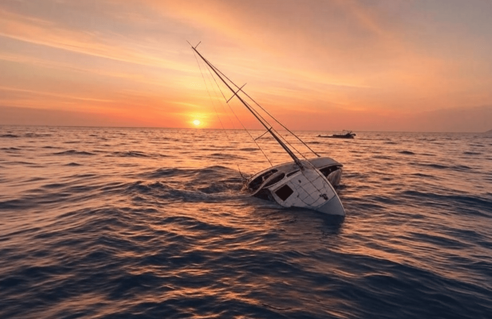 By November 12, the ship had reached the Bahamas, and was on course for an island named Great Stirrup Cay. The events that happened next are drawn from the story Harvey told the authorities several days later. According to Harvey, the weather suddenly turned violent after November 12. Violent winds caused the rigging to collapse, and the yacht began to take on water. As he was trying to save the ship, Harvey claimed, the cabin caught fire. Unable to coordinate his efforts with the other people aboard, and endangered by the sheets of flame engulfing the doomed vessel, Harvey finally gave up and escaped into the open ocean in a ten-foot life boat.